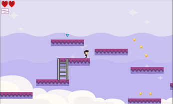 - Jump across floating cloud platforms